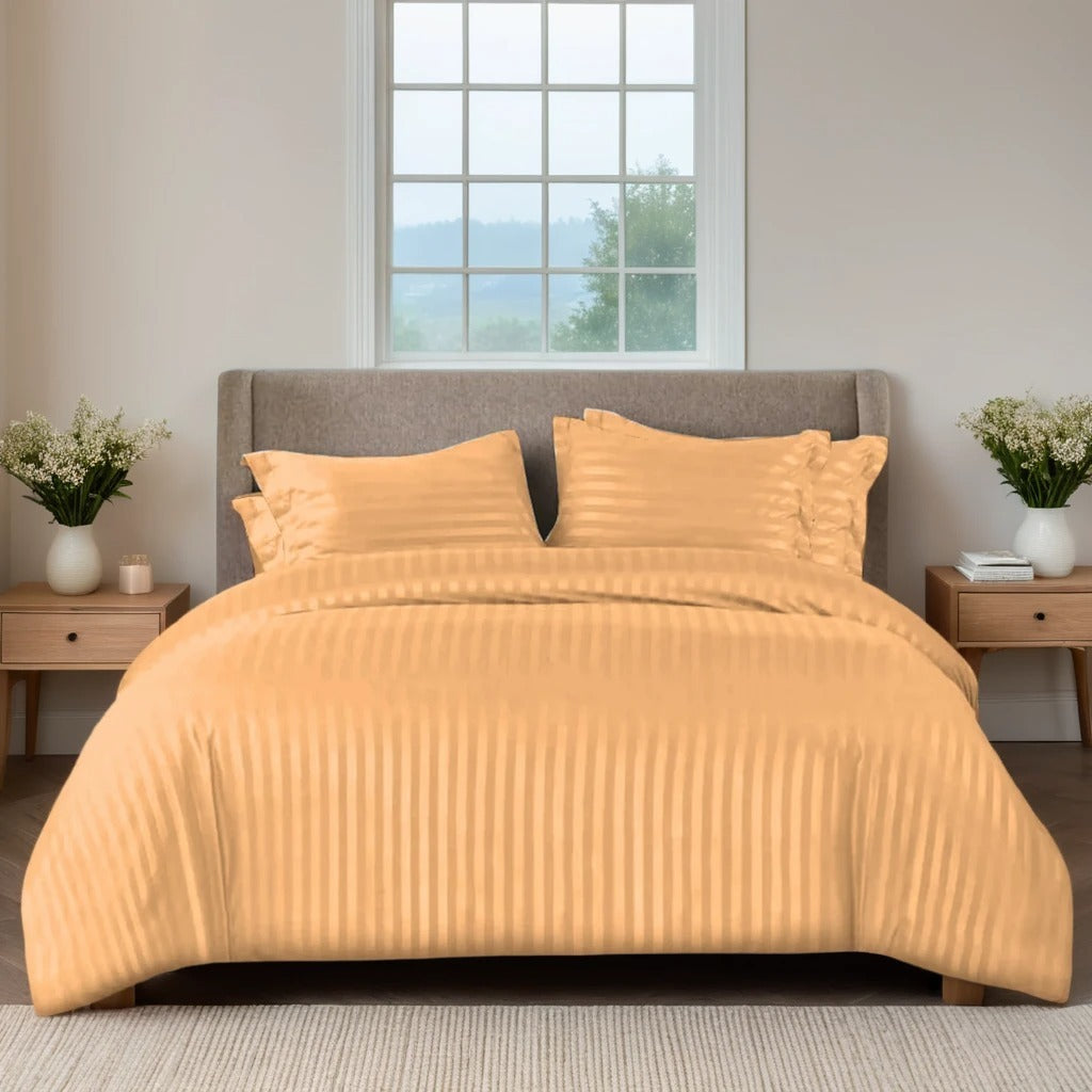 BEIGE SATIN STRIPE BEDSHEET SET - 5 PCS