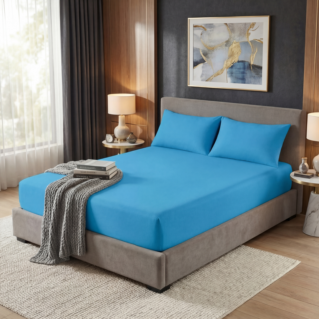 SKY BLUE LUXURY FITTED SHEET- 3 PCS