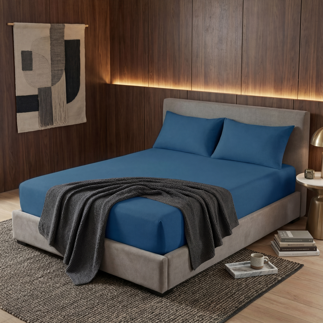 SEA BLUE LUXURY FITTED SHEET- 3 PCS