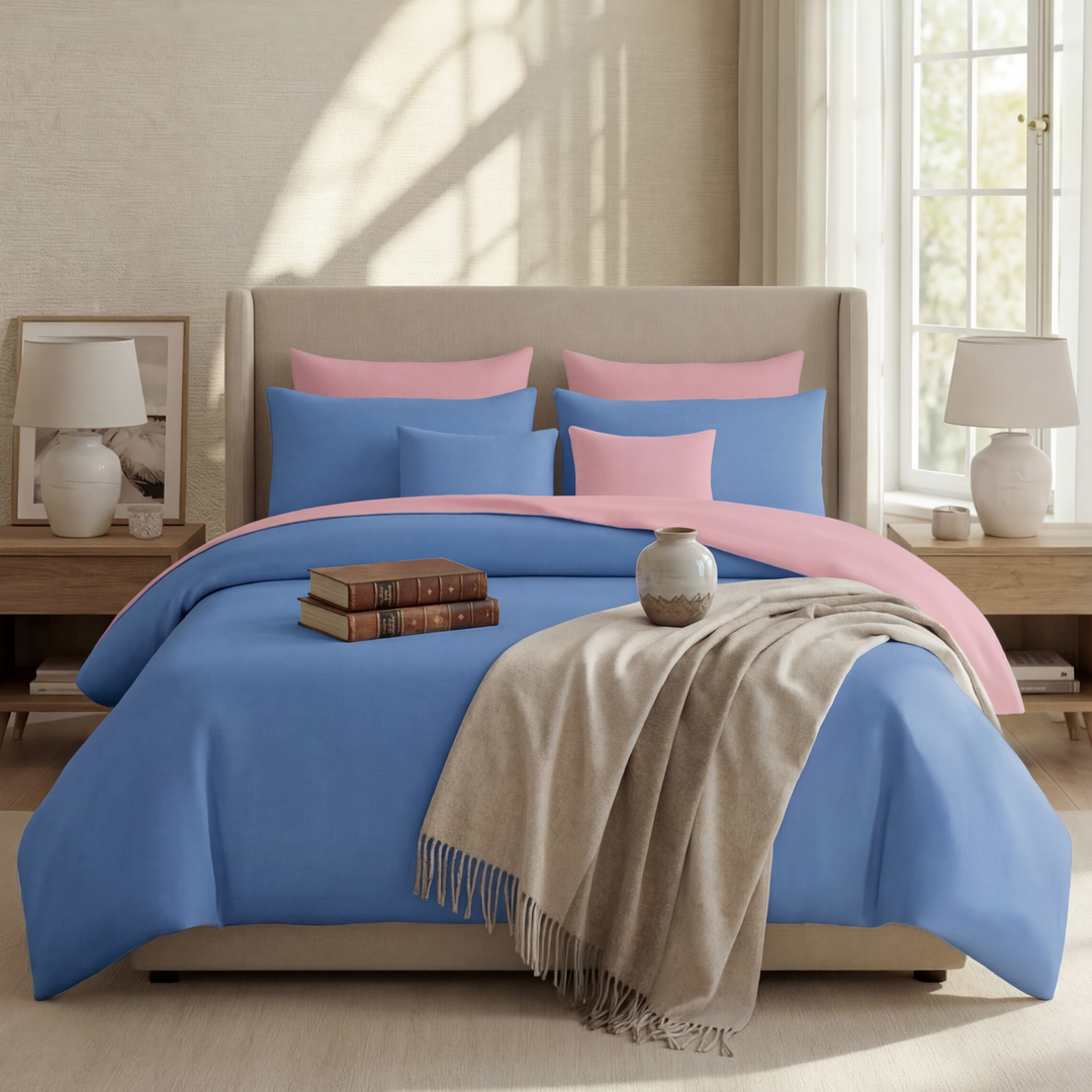 SKY BLUE/PEACH LUXURY DUVET COVERS SET- 8 PCS