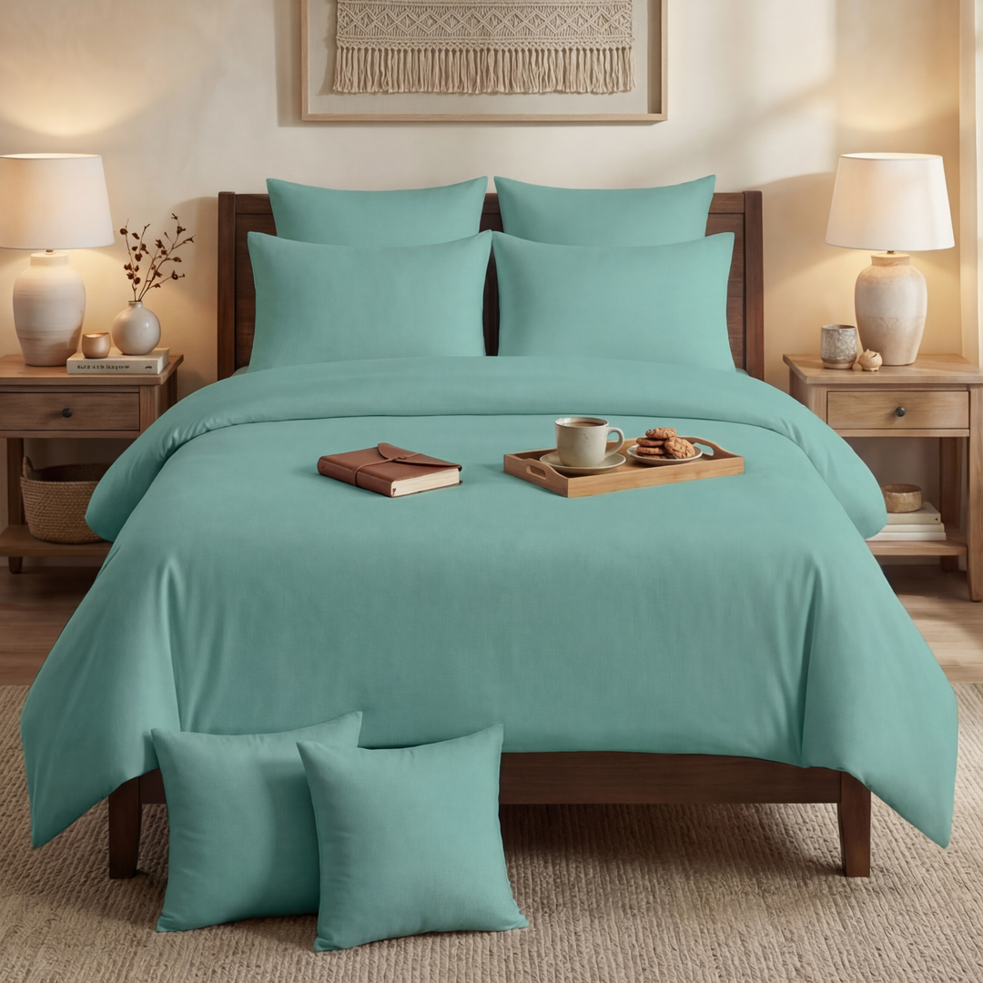 SEA GREEN LUXURY DUVET COVERS SET- 8 PCS