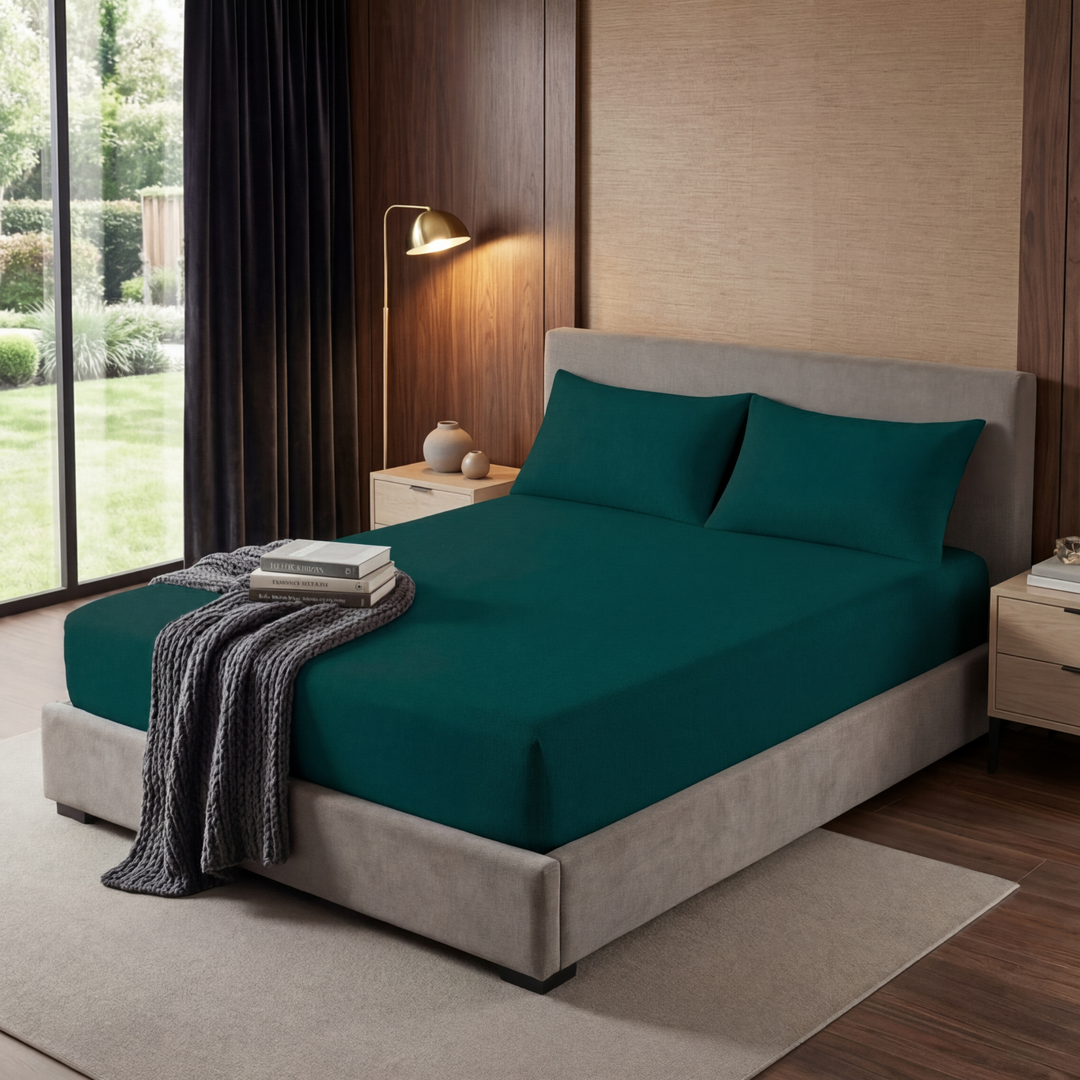 SEA GREEN LUXURY FITTED SHEET- 3 PCS