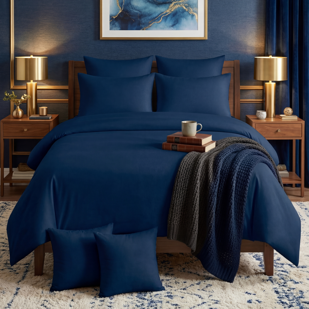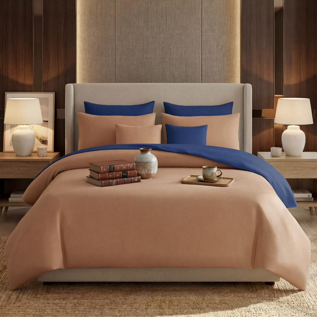 COPPER/NAVY LUXURY DUVET COVERS SET- 8 PCS