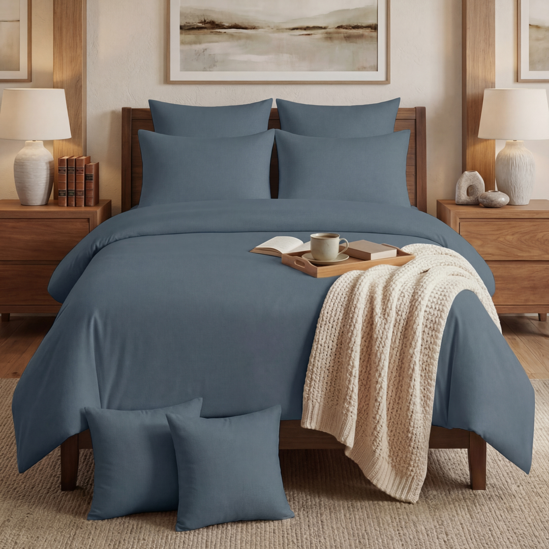 DUSTY BLUE LUXURY DUVET COVERS SET- 8 PCS