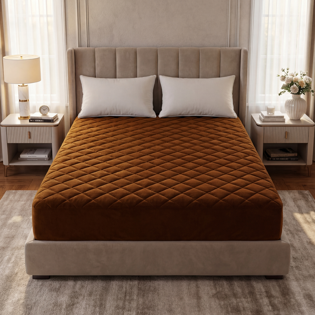 BROWN QUILTED WATERPROOF MATTRESS FITTED COVER