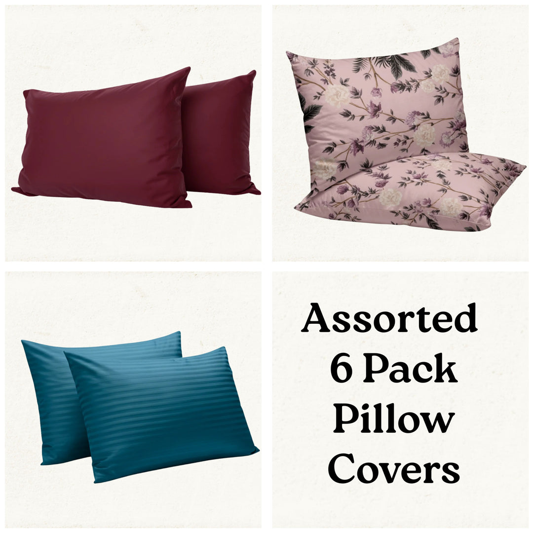 ASSORTED PLAIN PILLOW COVERS (PACK OF 6)