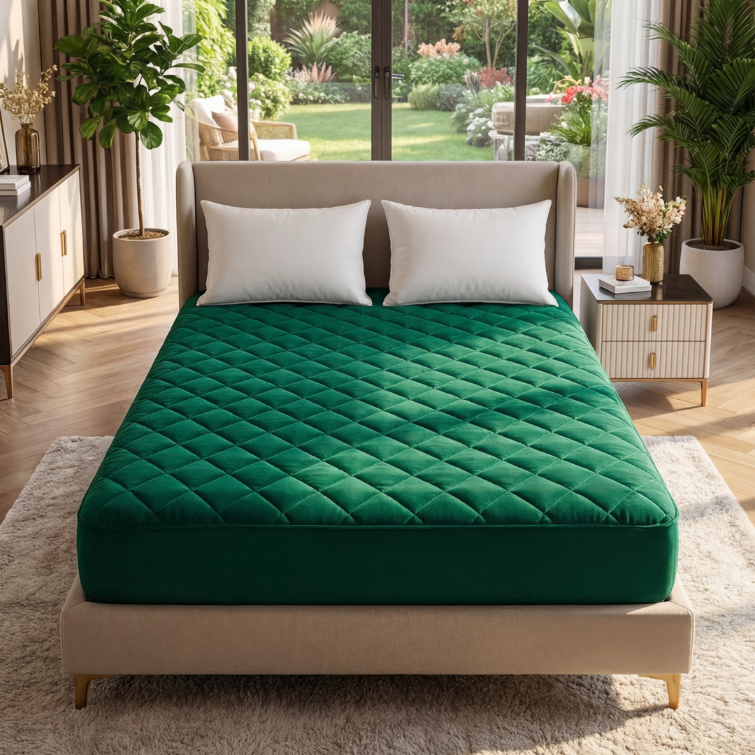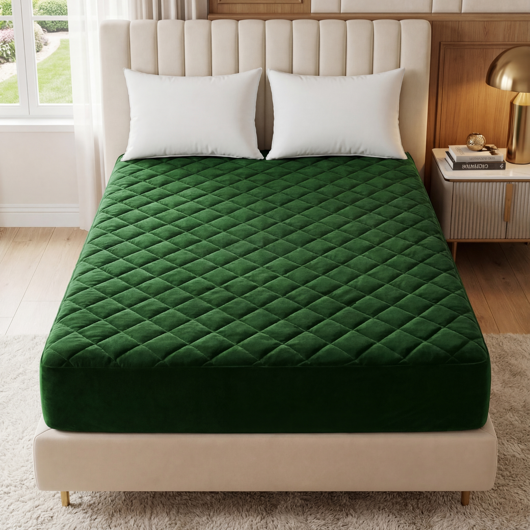 GREEN QUILTED WATERPROOF MATTRESS FITTED COVER