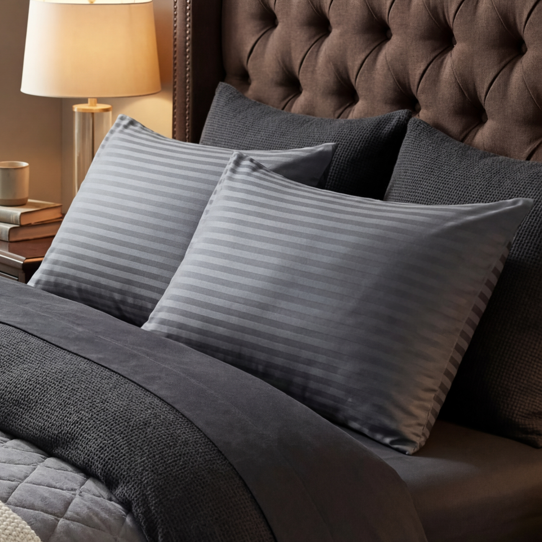 GREY SATIN STRIPE PILLOW COVERS