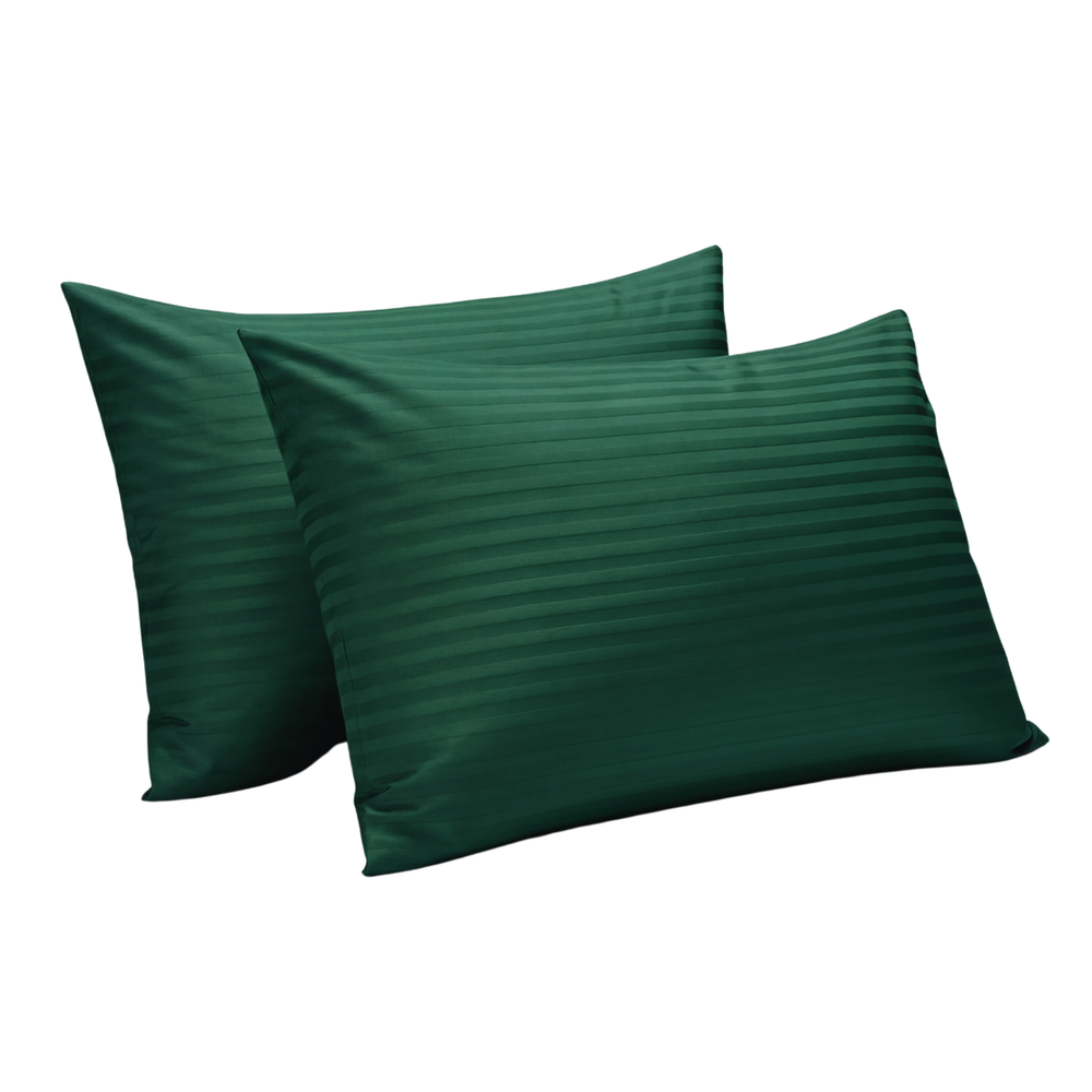 GREEN SATIN STRIPE PILLOW COVERS