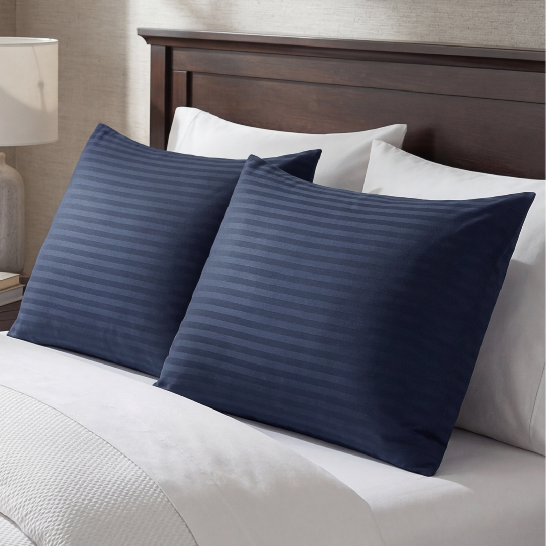 NAVY SATIN STRIPE PILLOW COVERS