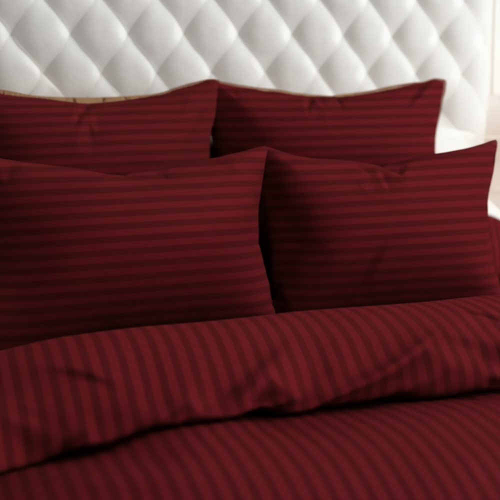 MAROON SATIN STRIPE BEDSHEET SET - 5 PCS