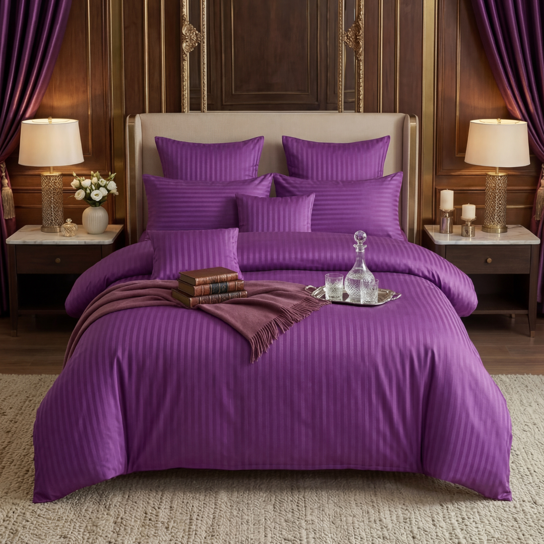 PURPLE SATIN STRIPE DUVET COVERS SET 8 PCS