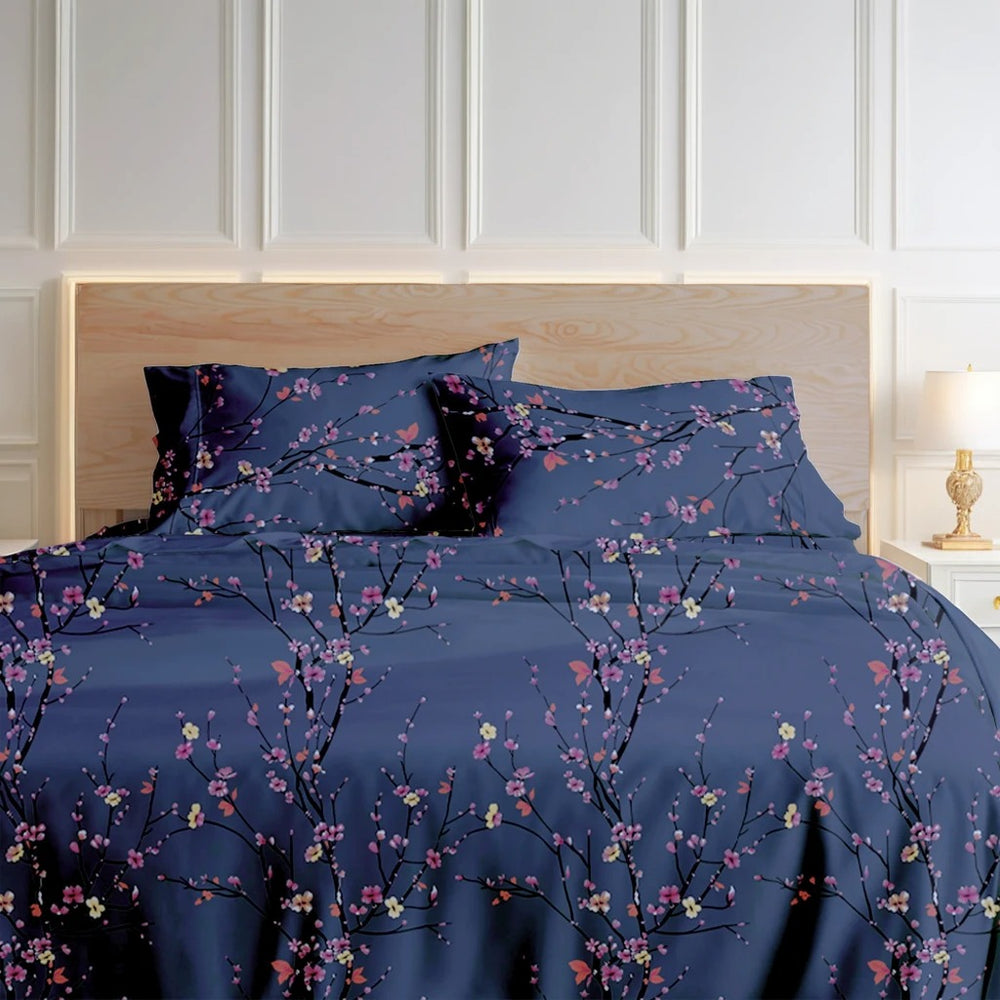 NAVY SATIN STRIPE BEDSHEET SET - 5 PCS