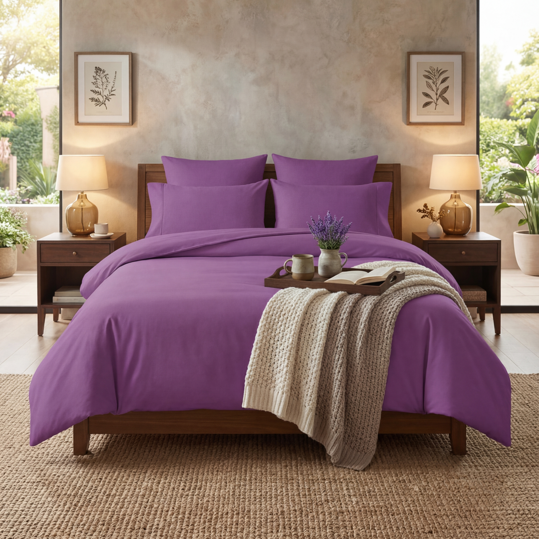 L.PURPLE LUXURY DYED BEDSHEET SET- 5 PCS
