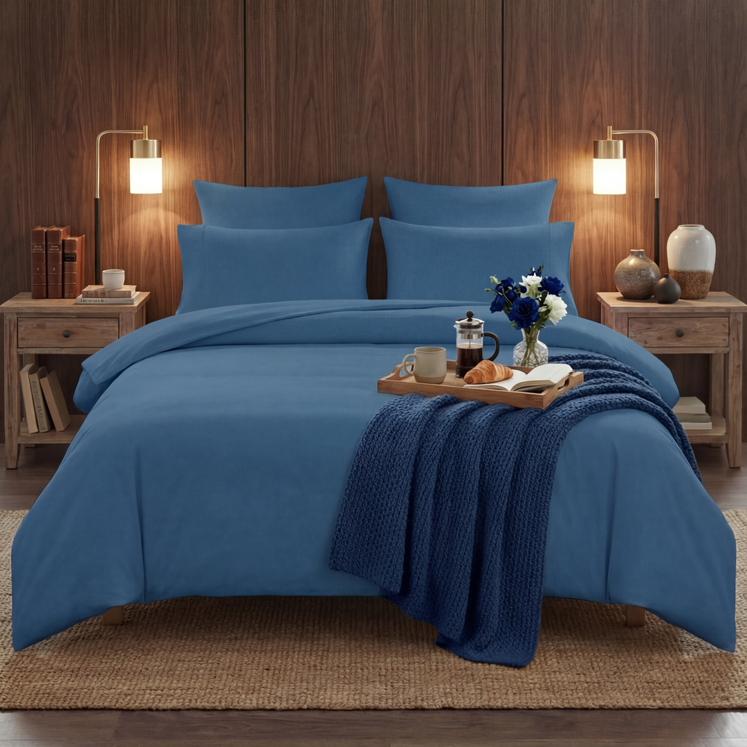 SEA BLUE LUXURY DYED BEDSHEET SET- 5 PCS