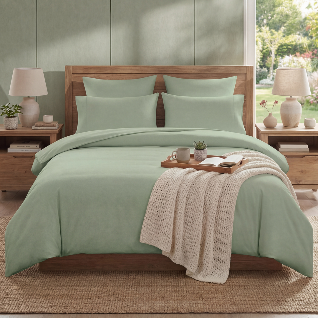 SEA GREEN LUXURY DYED BEDSHEET SET- 5 PCS