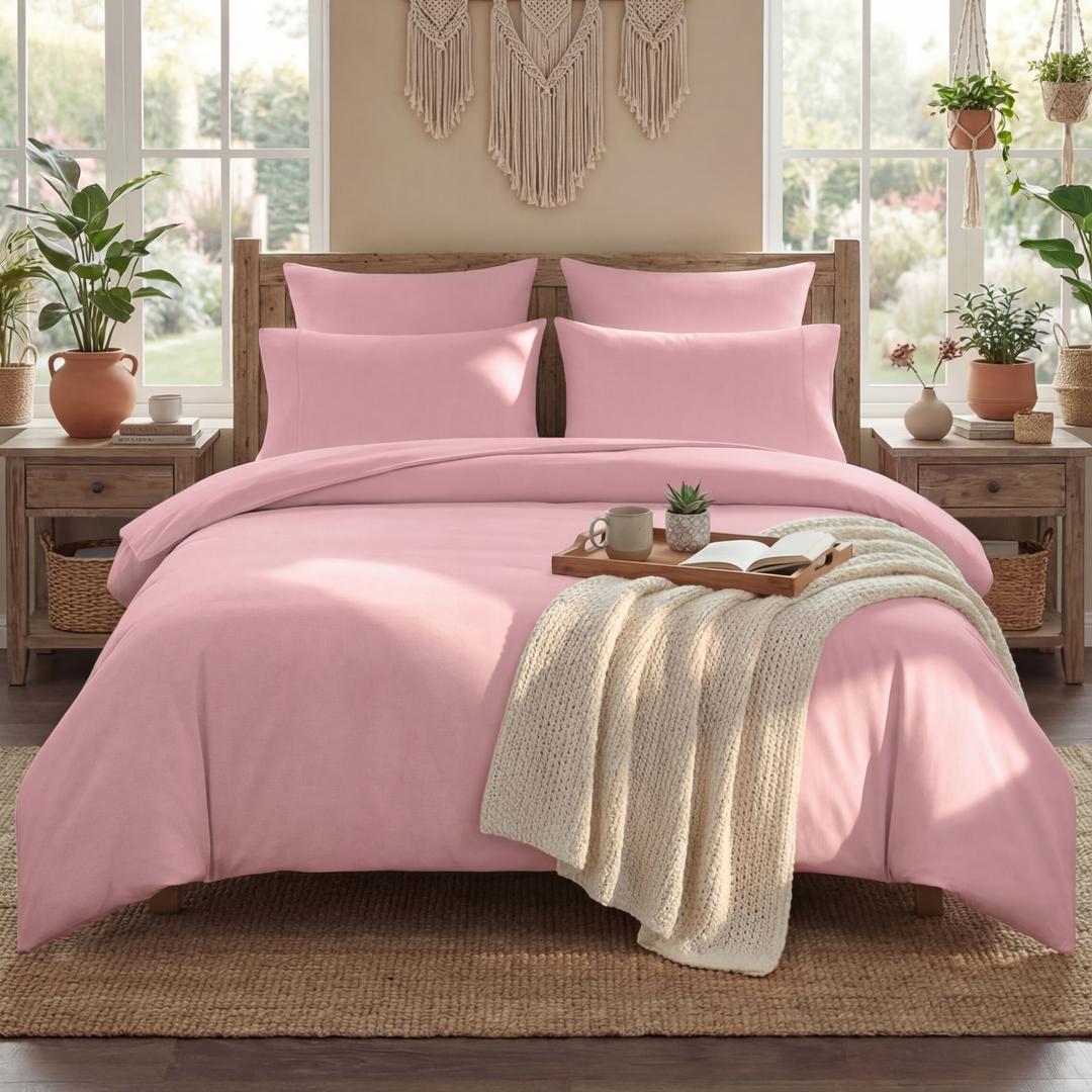 BABY PINK LUXURY DYED BEDSHEET SET- 5 PCS