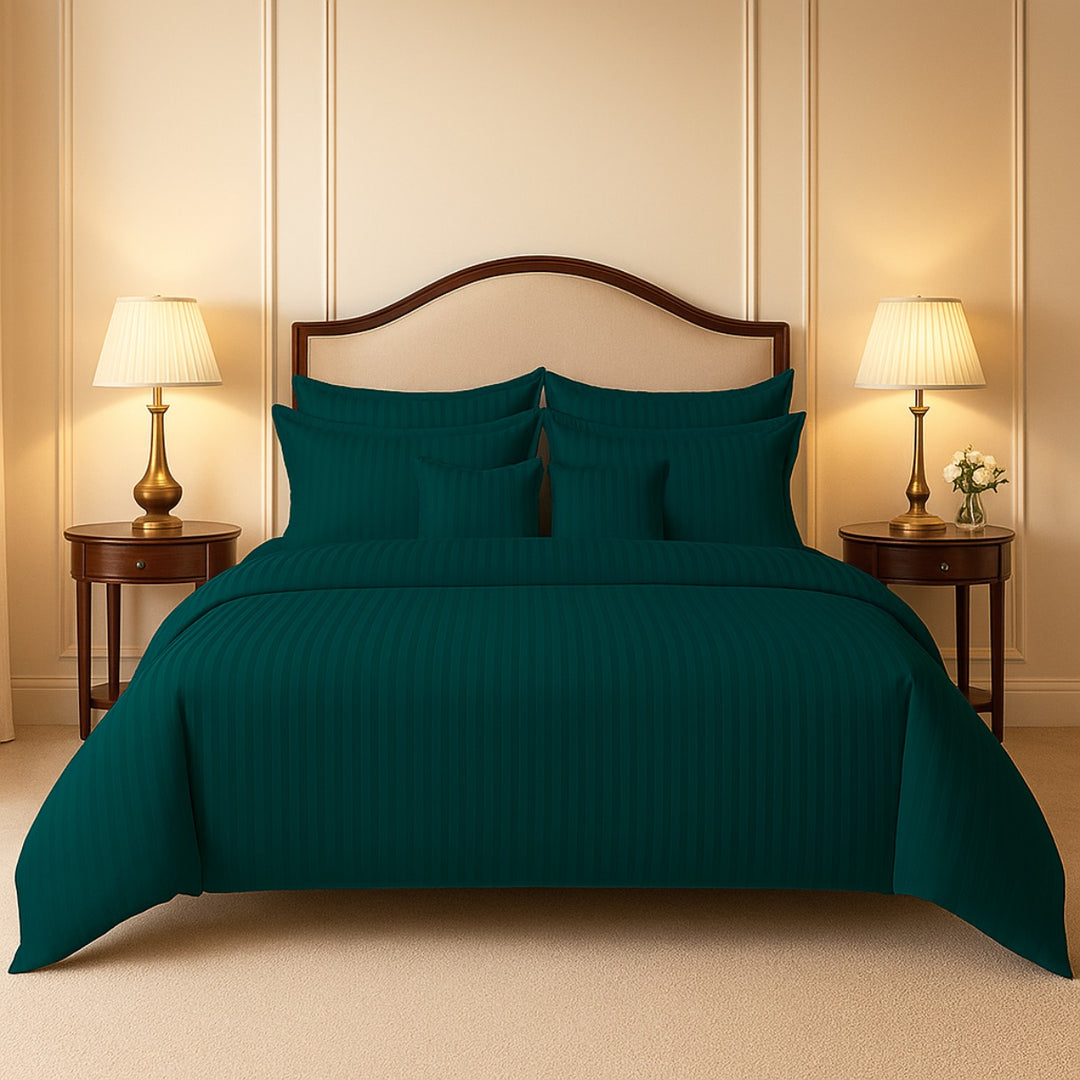 SEA GREEN stripe Winter Comforter Set- 8 Pcs