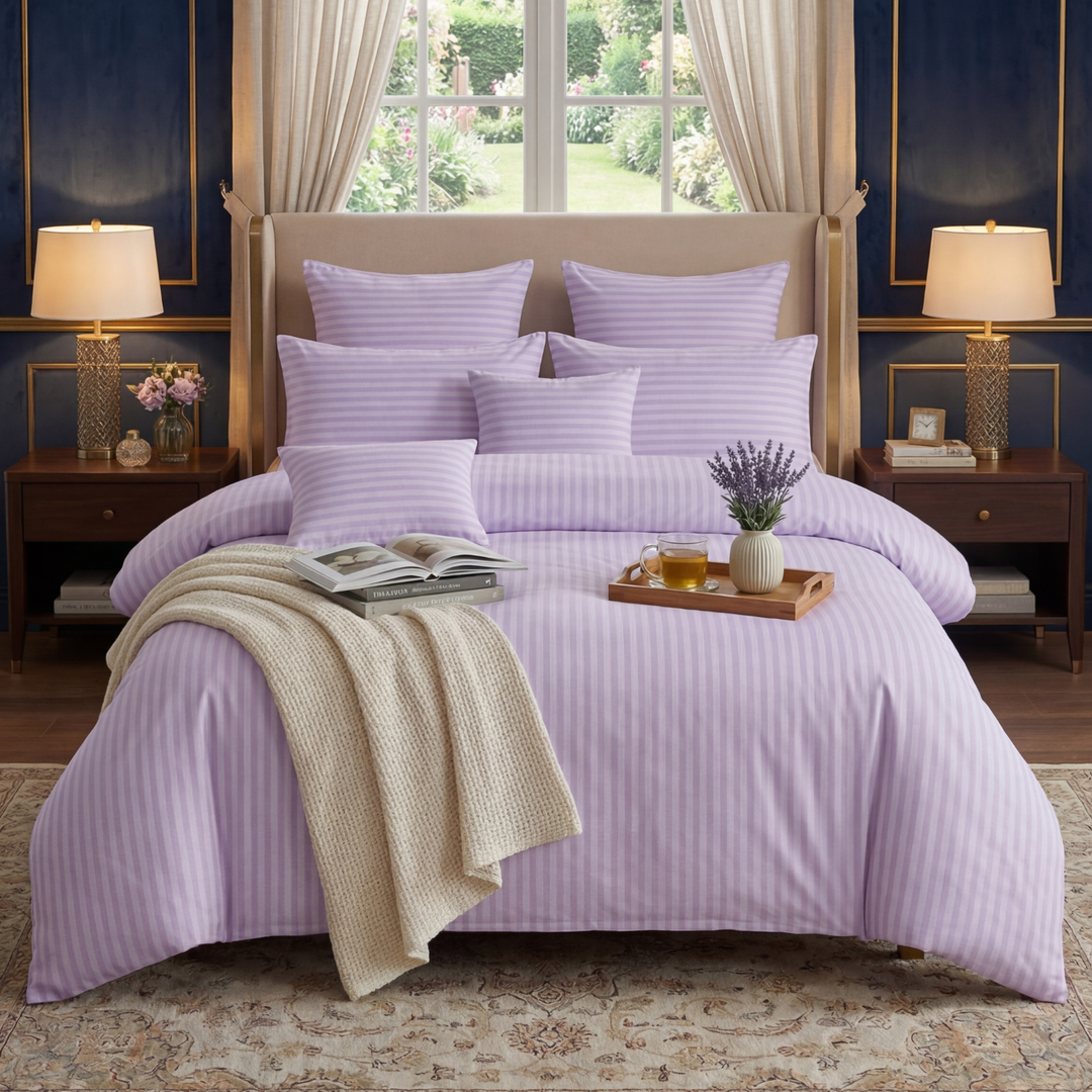 L.PURPLE stripe Winter Comforter Set- 8 Pcs