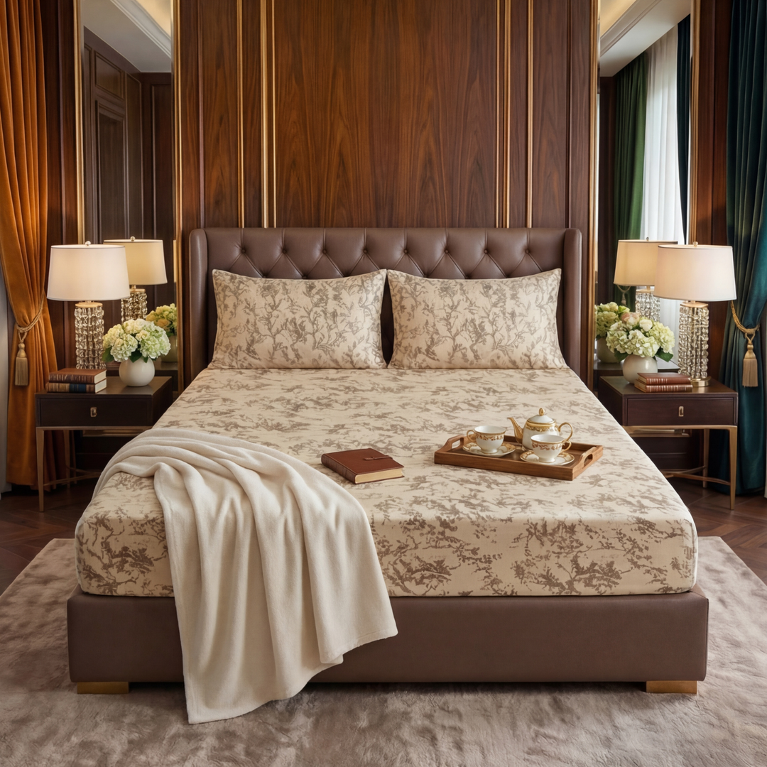 BEIGE LUXURY FITTED SHEET- 3 PCS