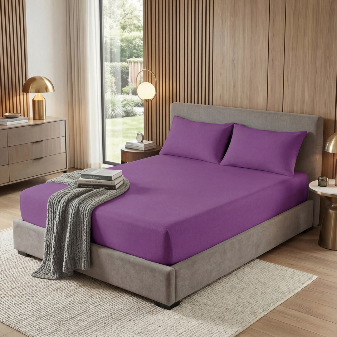 D.PURPLE LUXURY FITTED SHEET- 3 PCS