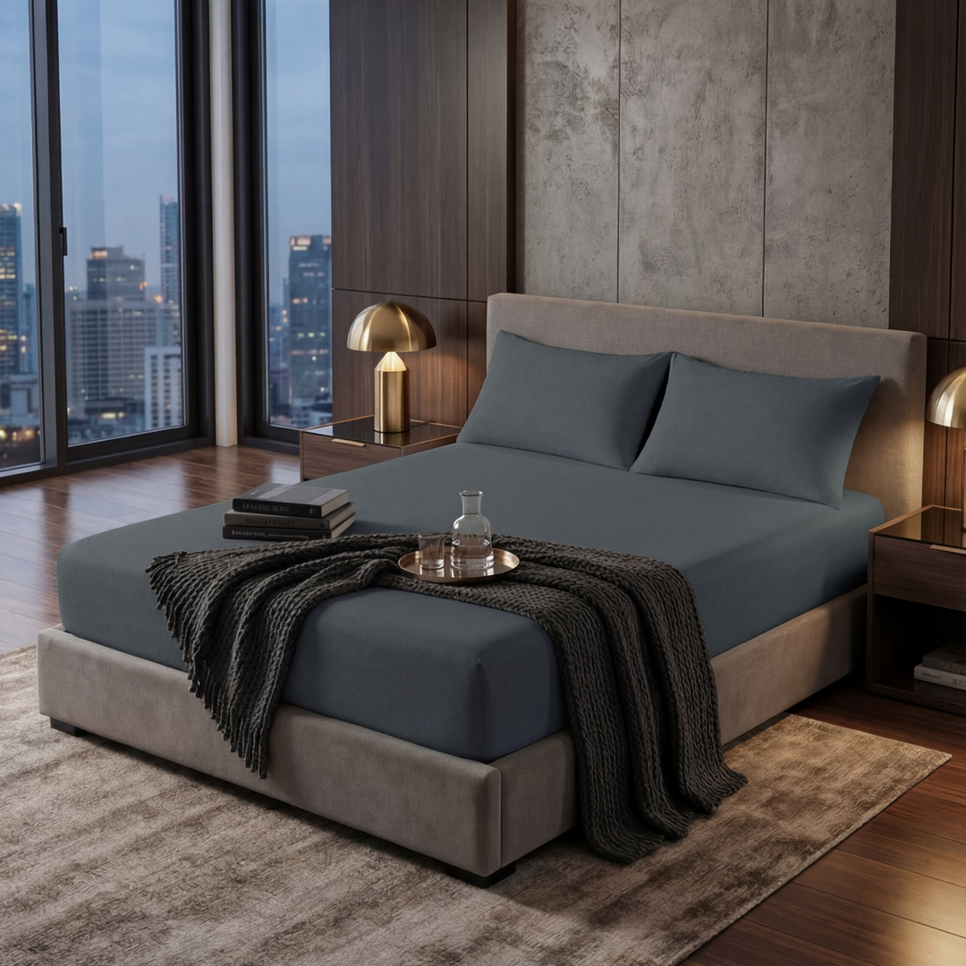 DUSTY BLUE LUXURY FITTED SHEET- 3 PCS