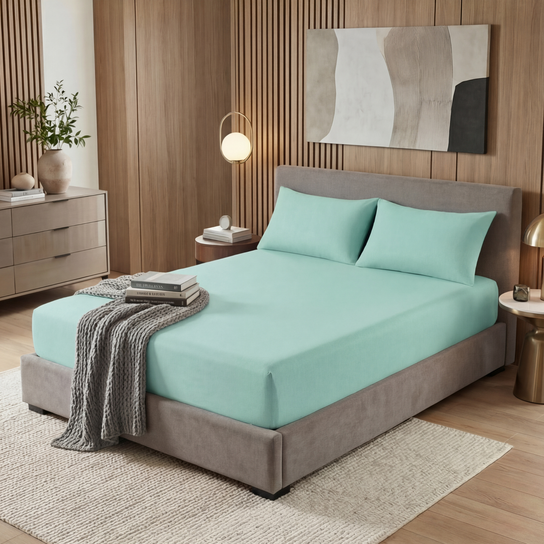 SEA GREEN LUXURY FITTED SHEET- 3 PCS