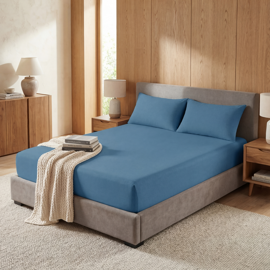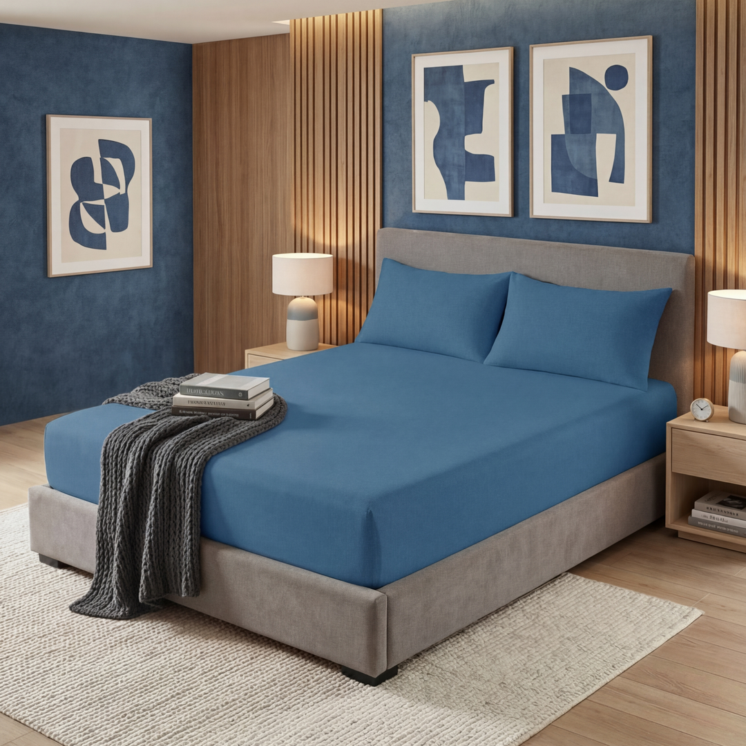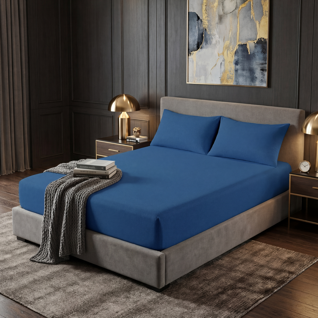SEA BLUE LUXURY FITTED SHEET- 3 PCS