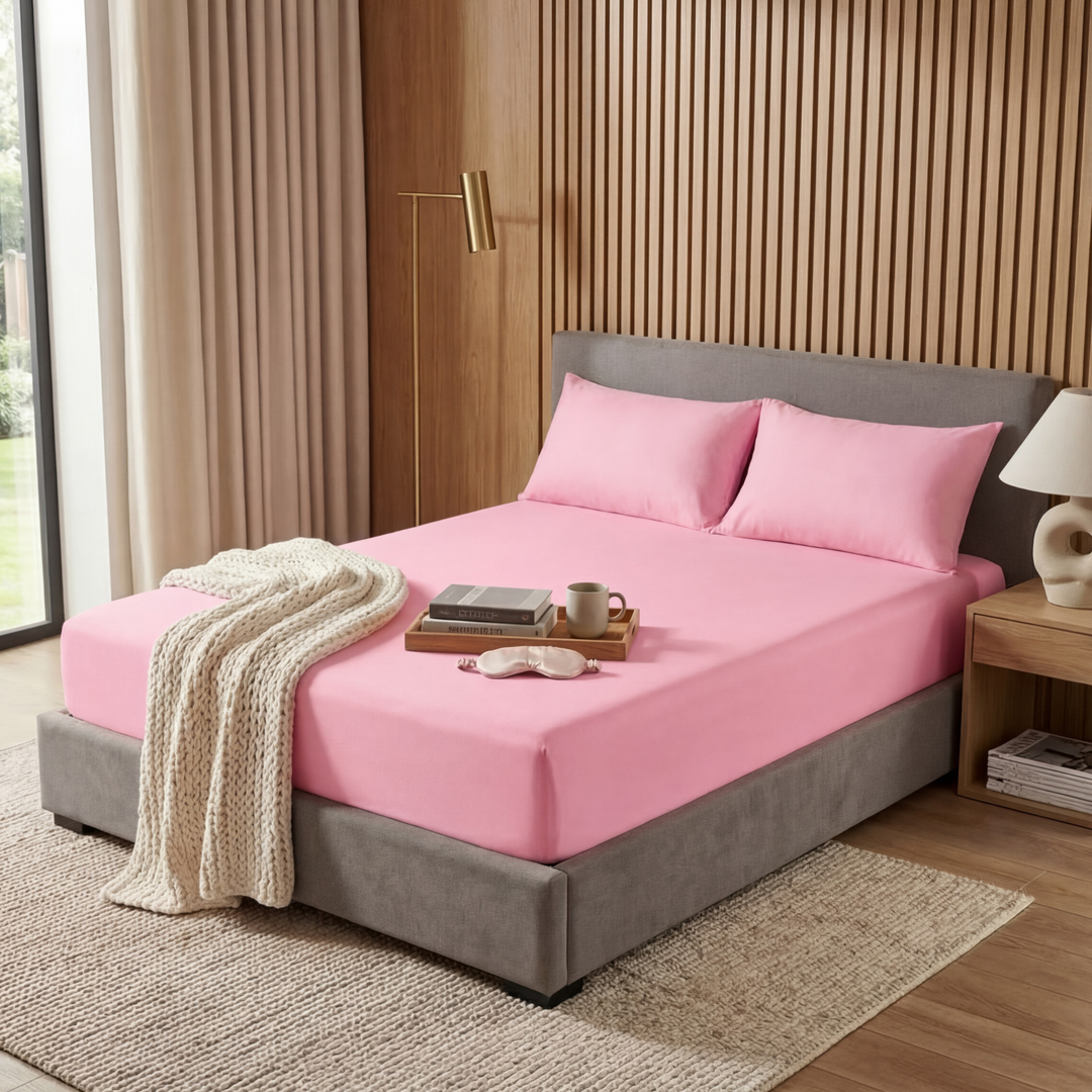 BABY PINK LUXURY FITTED SHEET- 3 PCS
