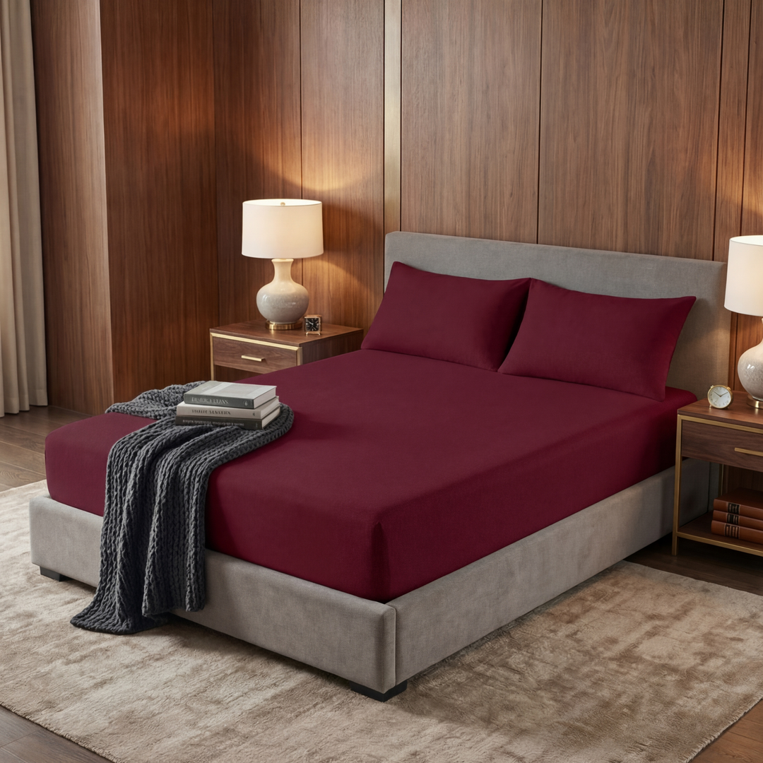 MAROON LUXURY FITTED SHEET- 3 PCS
