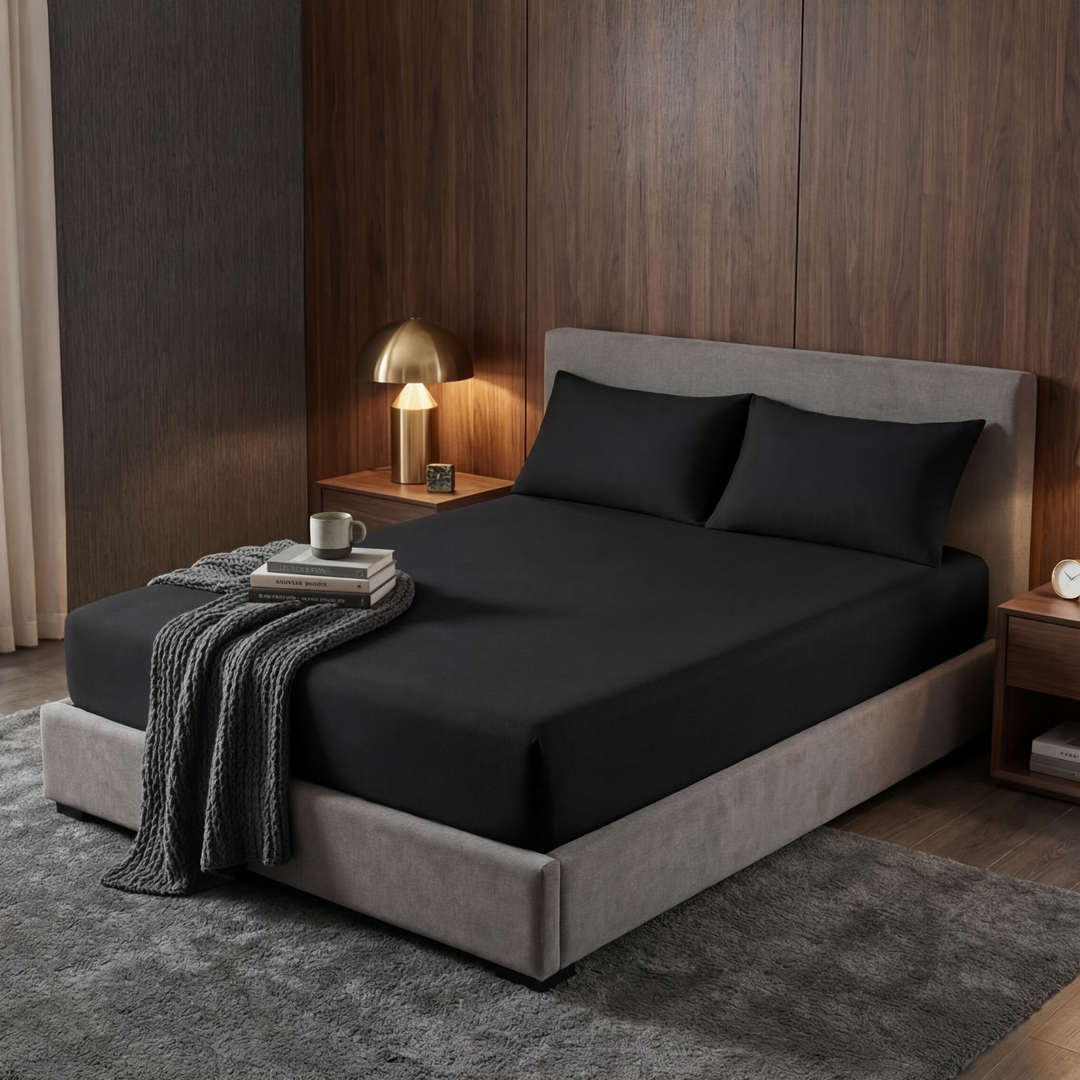 BLACK LUXURY FITTED SHEET- 3 PCS