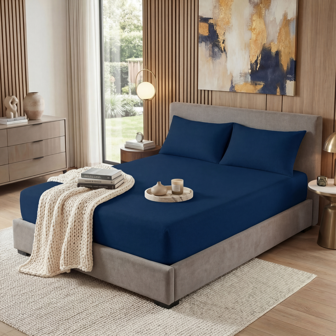 NAVY LUXURY FITTED SHEET- 3 PCS