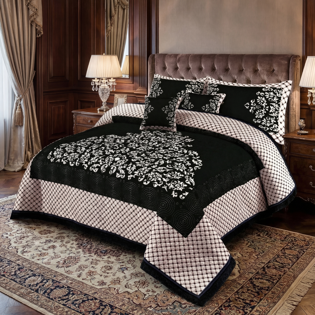 JACQUARD LUXURY BLACK BEDSHEET SET- 5 PCS