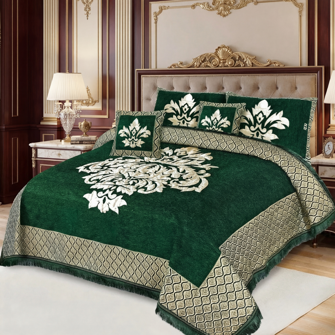 JACQUARD LUXURY GREEN BEDSHEET SET- 5 PCS