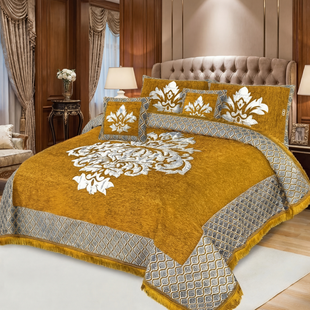 JACQUARD LUXURY MUSTARD BEDSHEET SET- 5 PCS