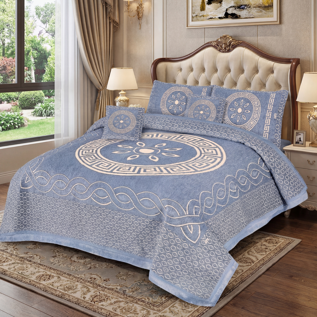 JACQUARD LUXURY YALE BLUE BEDSHEET SET- 5 PCS
