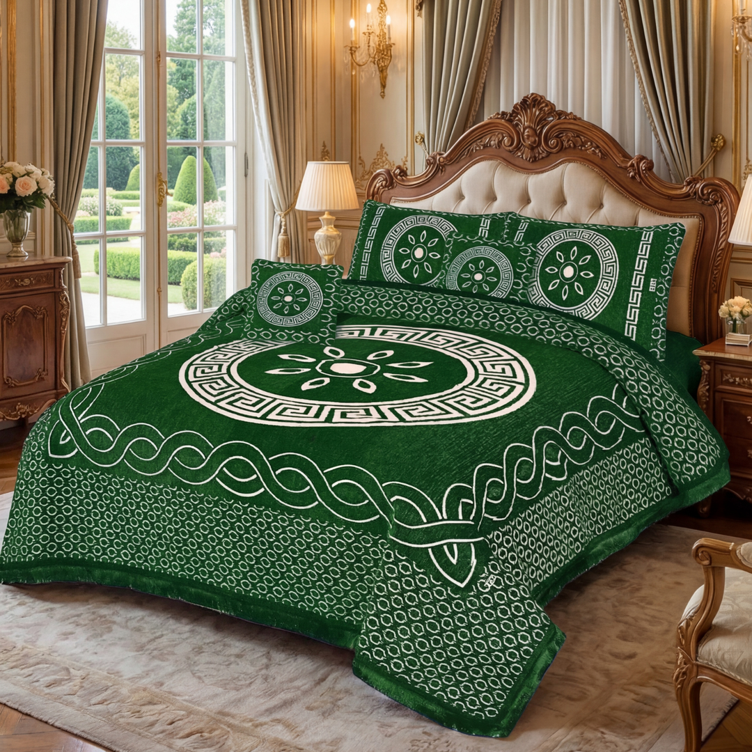 JACQUARD LUXURY D.GREEN BEDSHEET SET- 5 PCS