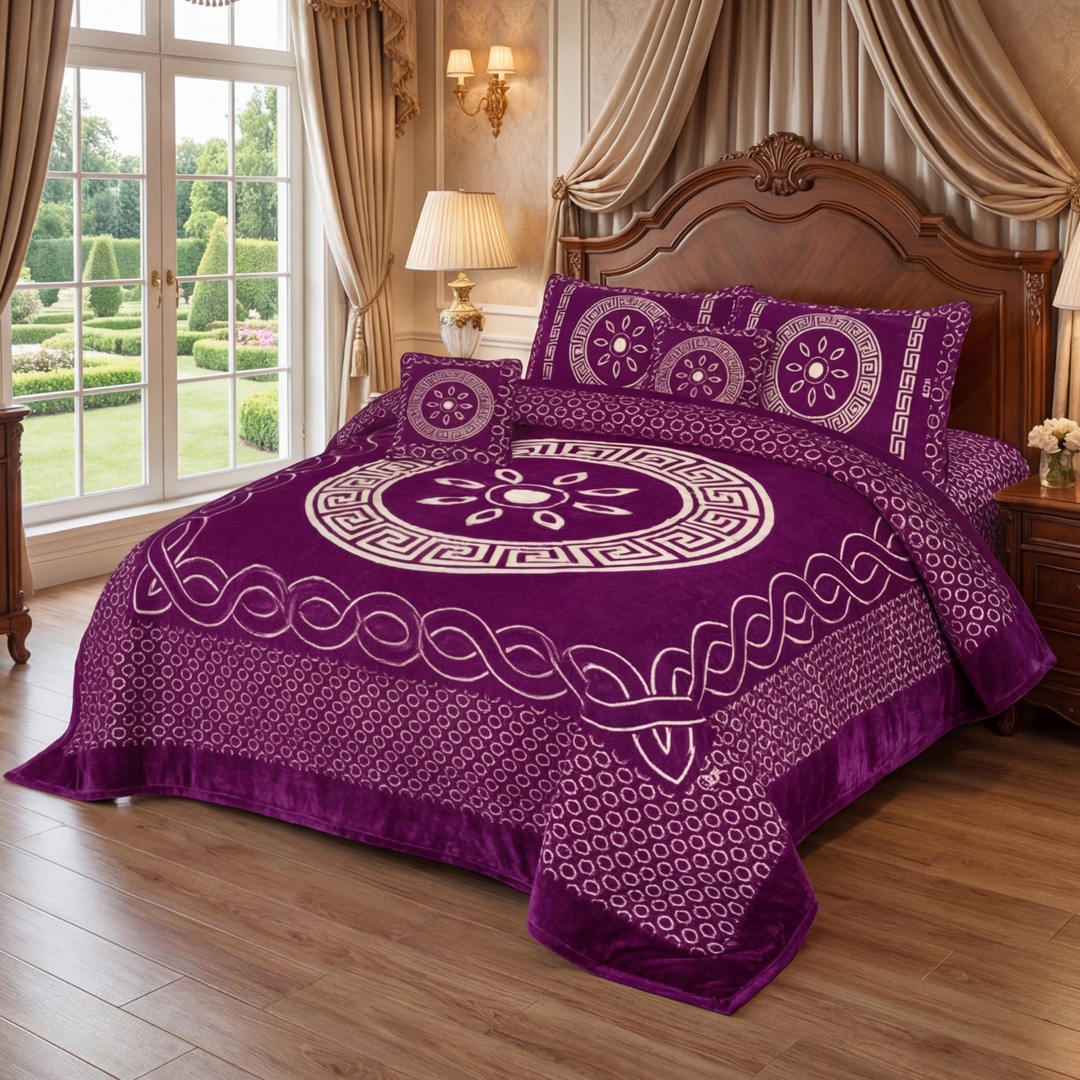 JACQUARD LUXURY PURPLE BEDSHEET SET- 5 PCS