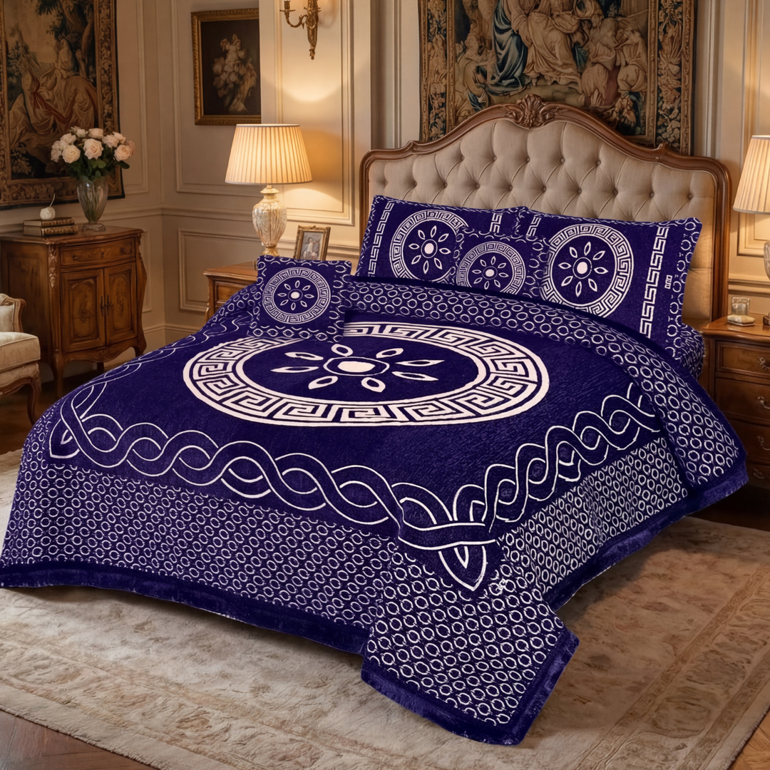 JACQUARD LUXURY ROYAL BLUE BEDSHEET SET- 5 PCS