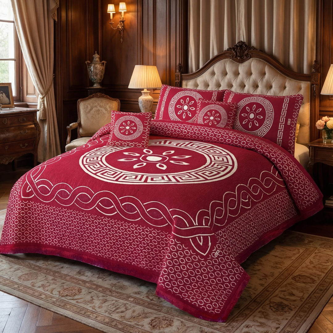 JACQUARD LUXURY RED BEDSHEET SET- 5 PCS