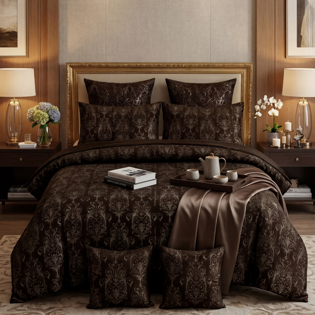 BROWN LUXURY DUVET COVERS SET- 8 PCS