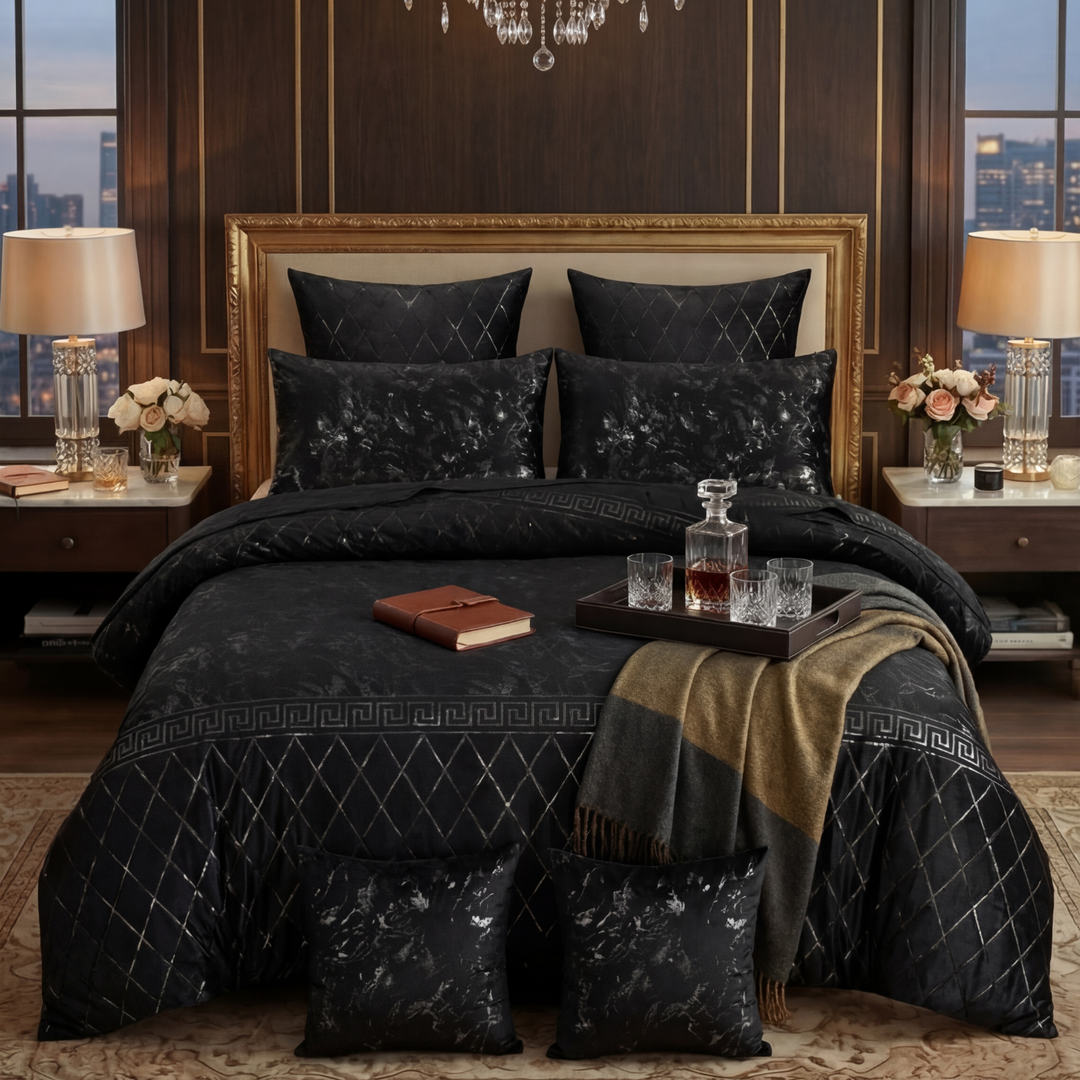 BLACK LUXURY DUVET COVERS SET- 8 PCS