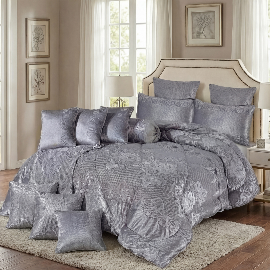 SILVER stripe Winter Comforter Set- 8 Pcs