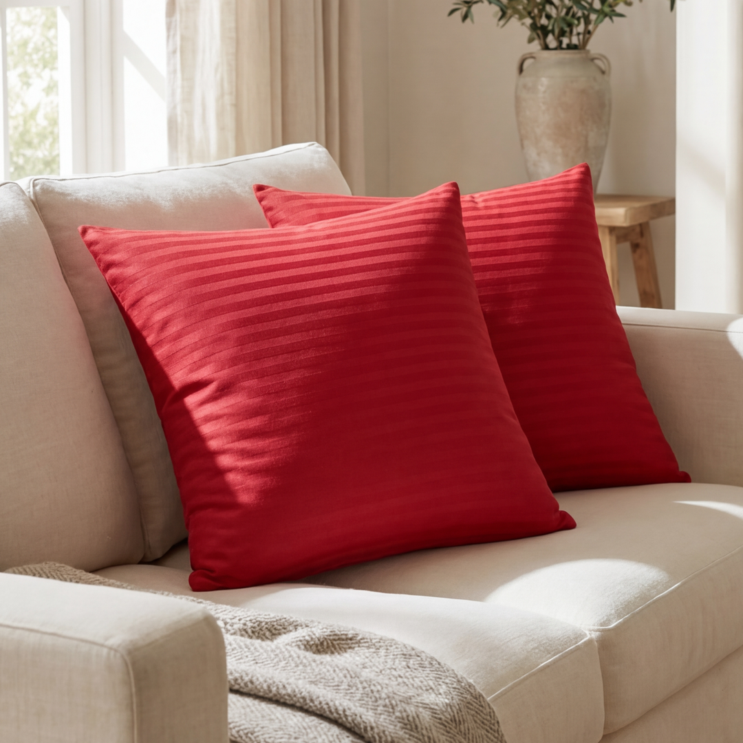 RED SATIN STRIPE CUSHION COVER (PACK OF 2)