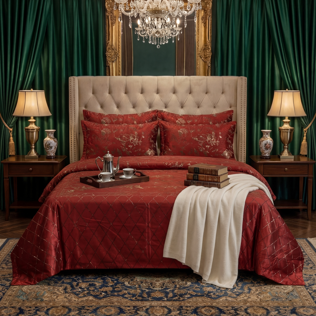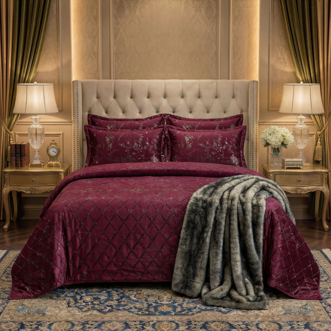 BAWA MAROON Winter Comforter Set- 8 Pcs