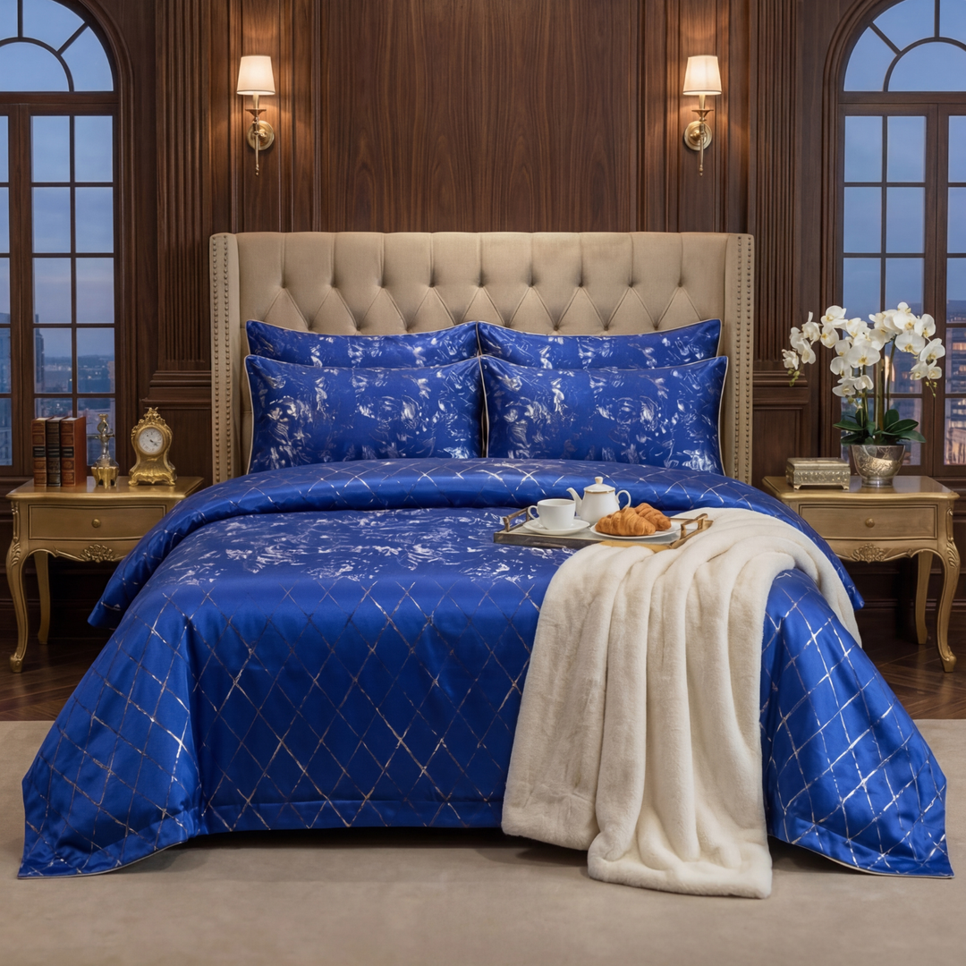 MILITARY/BLUE VELVET BEDSHEET SET - 5 PCS