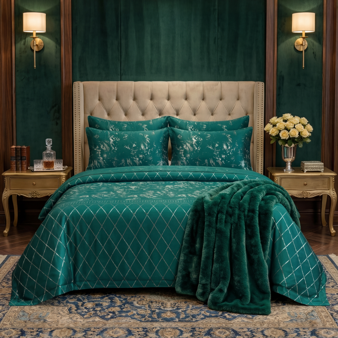 GREEN VELVET BEDSHEET SET - 5 PCS