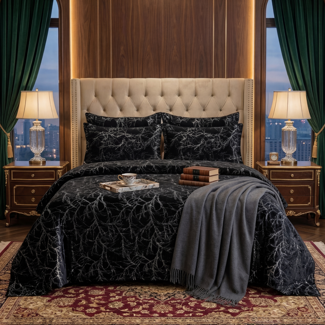 TREE/BLACK VELVET BEDSHEET SET - 5 PCS