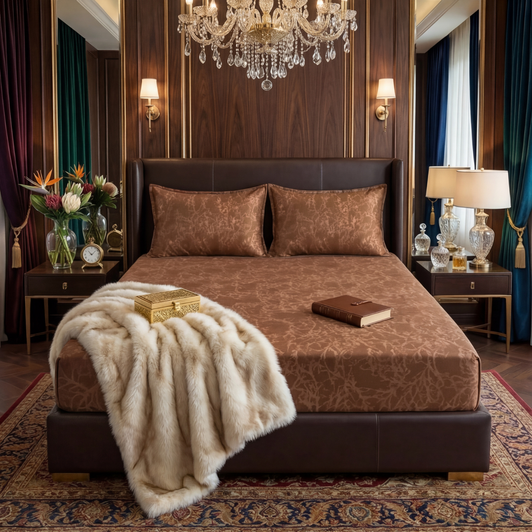 TREE/BROWN VELVET fitted bedsheet - (premium)