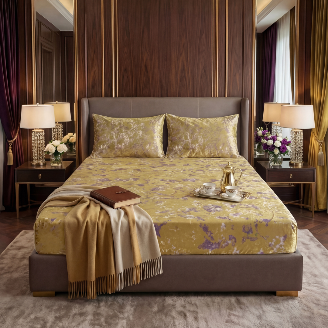 FLOWER/GOLDEN VELVET fitted bedsheet - (premium)